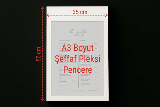 Duvar Tipi Menü Kutusu – A3 Format Koruyucu Ön Kapaklı Duyuru Panosu