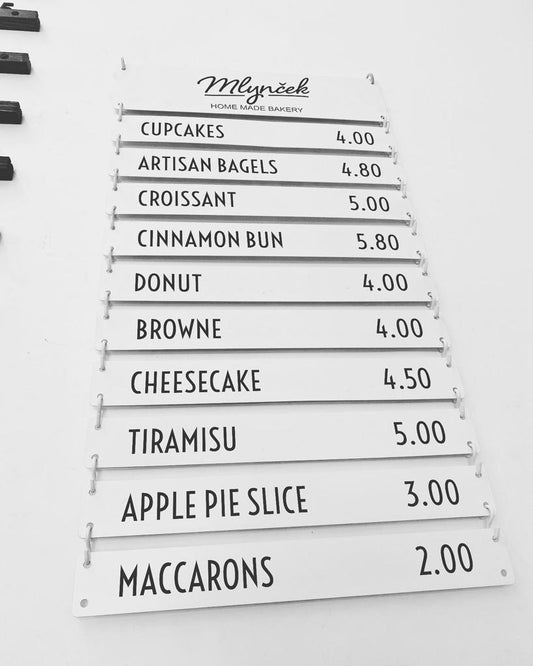 Kendin yap menü panoları, menülerinizi istediğiniz gibi düzenlemenizi sağlar. Kişiselleştirilebilir satırlı veya raylı tabanlar üzerine  çeşitli harf setlerimiz ile fiyat listeleri, günlük menüler veya duyurular kolayca hazırlanabilir. Pratik ve yaratıcı çözümler sunan bu panolar, kafe, restoran ve mağazalar için idealdir.